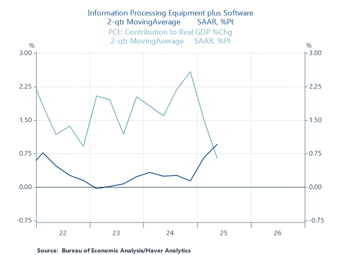 That’s a big deal, because the American economy is famously consumer-driven. The political system and every incentive are designed to keep consumption as the nation’s engine. What’s happening now is unprecedented: this year, AI investment will contribute more to U.S. growth than the increase in consumer spending.
